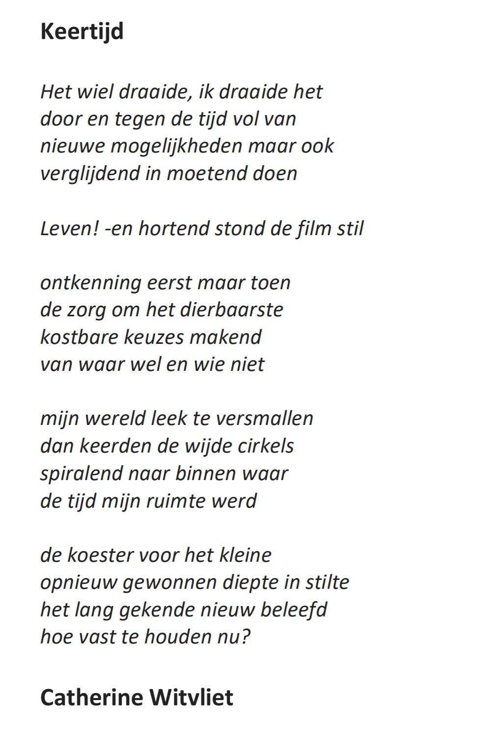 Een gedicht van Catherine Witvliet bij deze bijzondere tijd