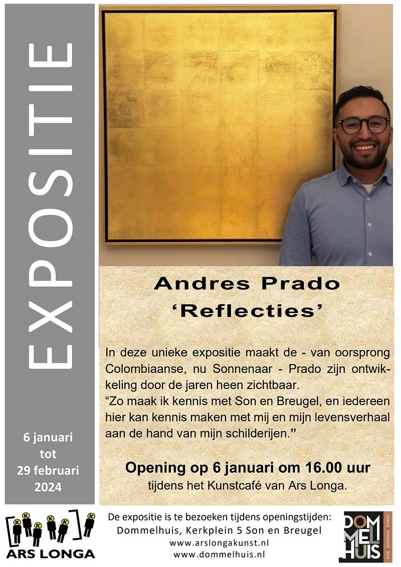 Kunstvereniging Ars Longa gaat ook in 2024 door met het succesvolle Kunstcafé. Vanaf nu exposeert gedurende iedere twee maanden telkens een nieuwe kunstenaar zijn of haar werk in het Dommelhuis. Op 6 januari start de eerste kunstenaar, Andres Prado (37). Hij exposeert zijn kunstwerken in de maanden januari en februari, en laat bezoekers kennismaken met zijn typerende stijl.