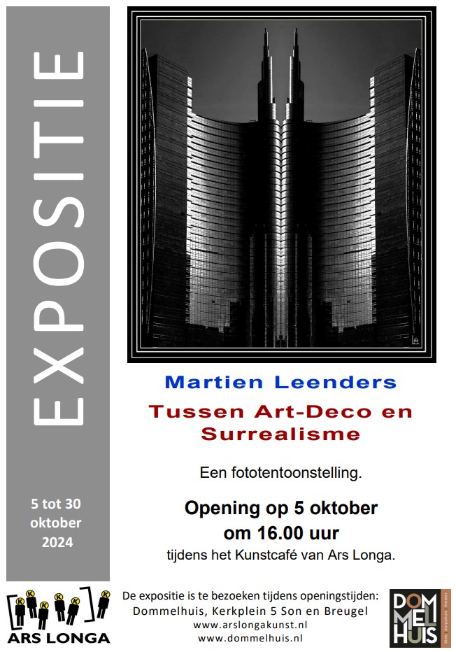 Vanaf 5 tot 30 oktober is de fototentoonstelling “Tussen Art-Deco en Surrealisme” van Martien Leenders in het Dommelhuis te zien.